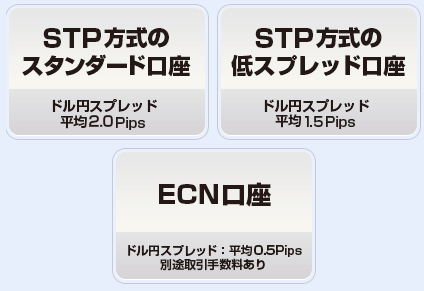 (最狭スプレッドを提供するECN口座もあり。)